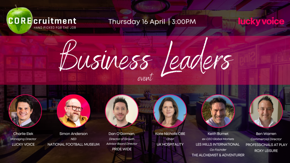 We are delighted to invite you to a special CORE Business Leaders - Professionals at play! event on Thursday 16th April from 3:00pm, hosted at the fantastic Lucky Voice, Liverpool Street.